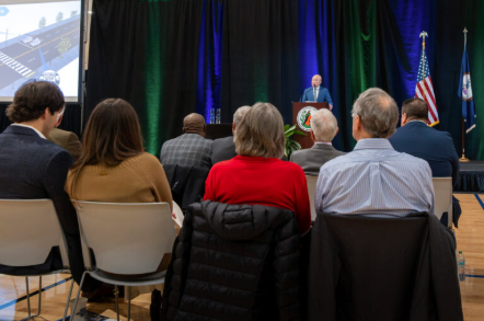 Before passing the program to senior officials who chronicled many of the year’s achievements and initiatives, Vithoulkas noted a scrolling collage with dozens of photos of events for groundbreakings and ribbon-cuttings.